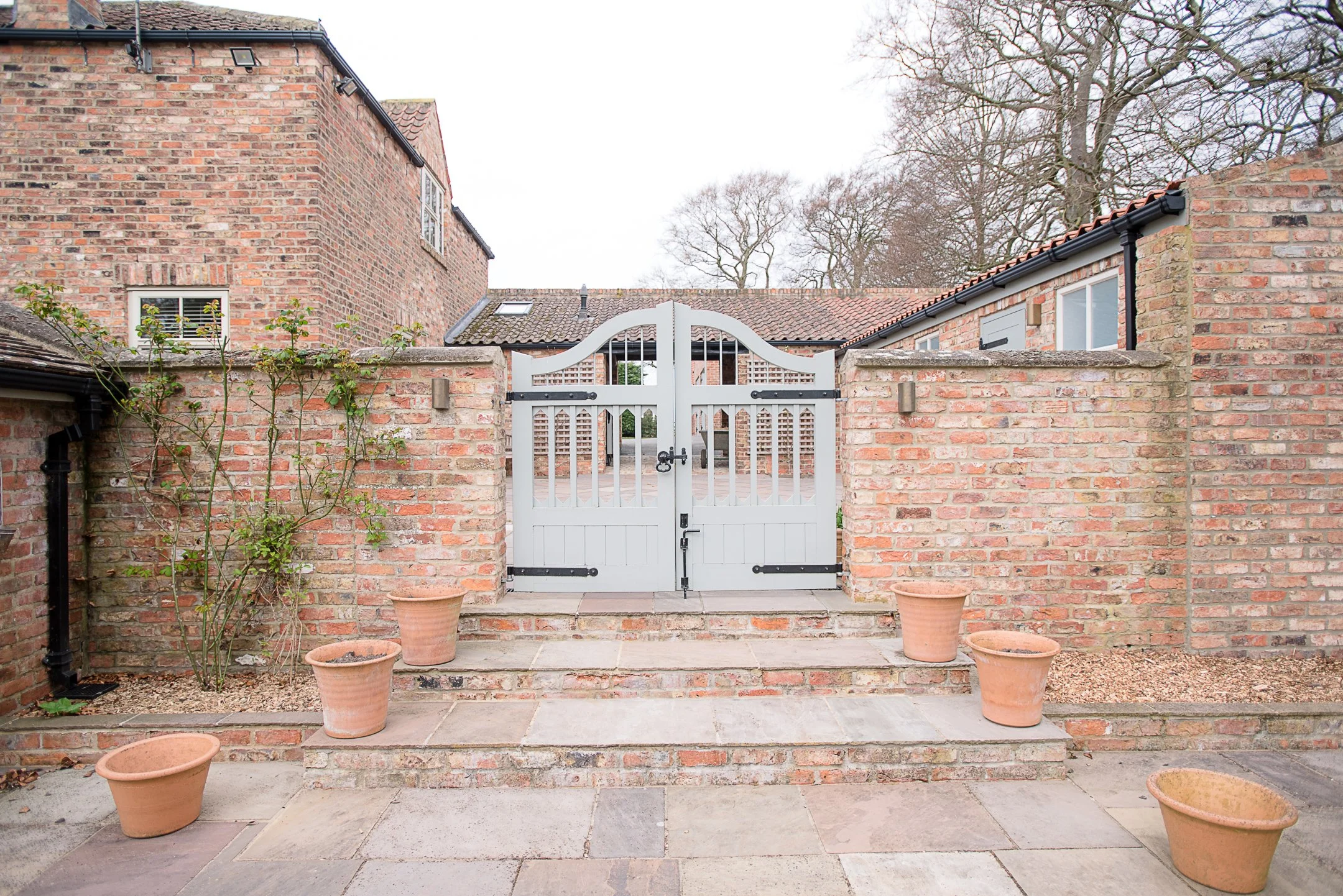 Externally the property also benefited from new electric entrance gates (with the gate automation completed in-house), garden patio gate and cattle grid, all of which were fabricated by Hutchinson’s Fabrications Ltd. The new brick opening and the wooden gate to the garden were made in-house by BJ Bain Building Contractors and the patio paving expertly installed by our team.
